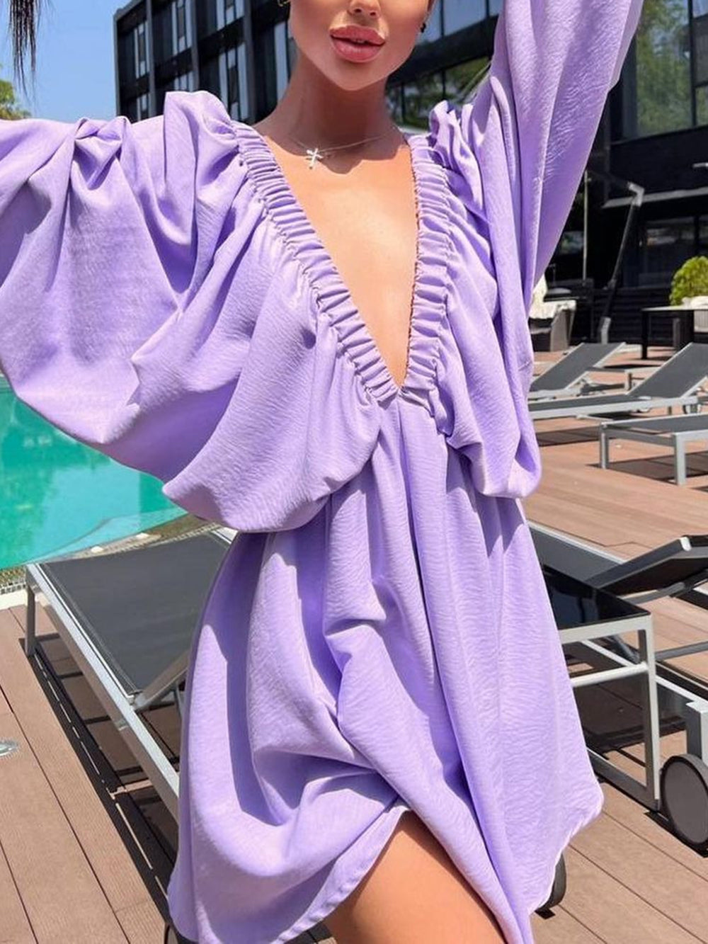Embrace your inner fashionista and step out in confidence with our Woven Plunge Skater Mini Dress. Its flattering silhouette, plunging neckline, and flared skirt make it a go-to option for any fashion-forward individual.